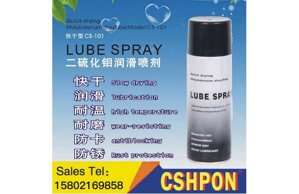 1.1.Pre-assembly process: dry lubricant can provide protection during assembly. When using spray cans, the product will form a thin lubricating coating on the surface of the assembled parts with no change in fit tolerance. The average particle size of molybdenum disulfide is only 0.5 micron meters. The lubricant is suitable in open gears, mechanical assembly, mold assembly / power generation induction groove, steam generators and so on.